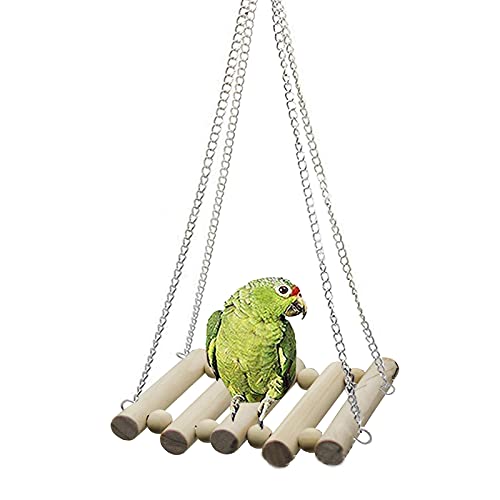 Natuurlijk materiaal: De papegaaienschommel is gemaakt van natuurlijk hout, is veilig en niet giftig, duurzaam en zeer diervriendelijk.