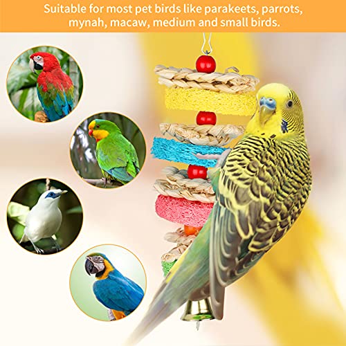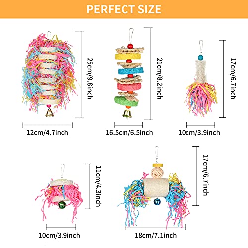 1. Het bevat 5 verpakkingen van verschillende soorten kleurrijk hangend speelgoed voor het kauwen van vogels, breng vreugde aan uw papegaai.