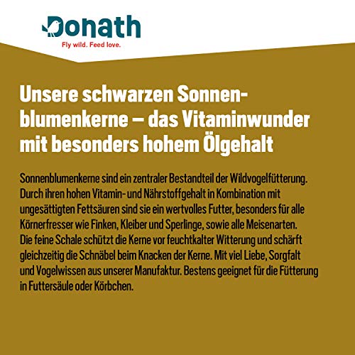 Specification: Donath BIO Zonnebloempitten Zwart – een vitaminebom met bijzonder hoog oliegehalte – waardevol vogelvoer voor alle…