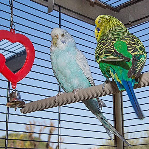 Met drinkflessen, vogelspeelgoed, schommels, clips voor groenten, een traditionele zitstok en een modulaire flexibele zitstok, een voerbak voor puree en een voerbak voor koekjes
