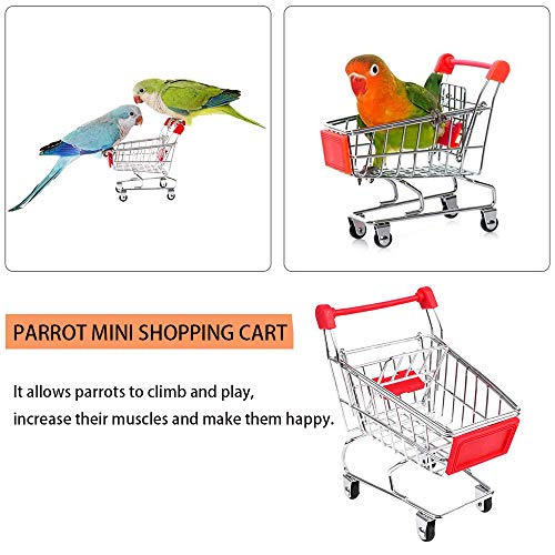 🎁 Vogelspeelgoedset: bevat 1 x mini-winkelwagen, 1 × skateboard, 1 × spaarbank, 5 × trainingsring en 2 × belbal, geschikt voor dagelijks interactief tafelspelen met papegaaien, training papegaaien om hun poten te laten staan en te slijpen, spieren te versterken.