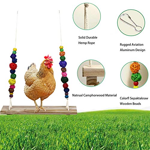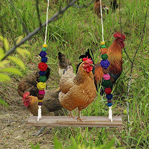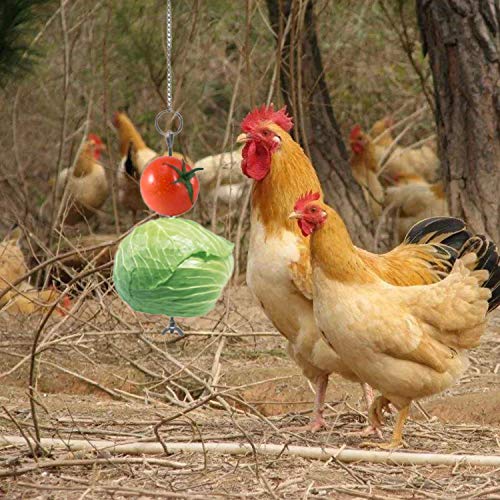 Eenvoudig te installeren: met ophanghaakontwerp is het handig om het kippenspeelgoed in je kippenhok of tuin aan te brengen, sluit de stalen haak gewoon aan op de bovenkant van je huisdierkooi, als de lengte niet genoeg is, kun je de lengte naar wens vergroten en je kunt de kip op de baars laten zwaaien.