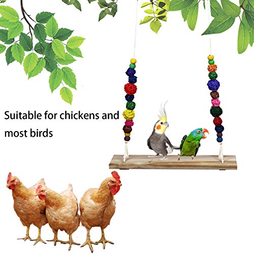 Natuurlijke materialen: gemaakt van 100% natuurlijk hout, gekleurde houten kralen, katoenen touw, niet-giftige natuurlijke voedselkleuring en hoogwaardig natuurlijk touw, de schommel is geschikt voor verschillende kippen, papegaaien en vogels om te schommelen en spelletjes te spelen.
