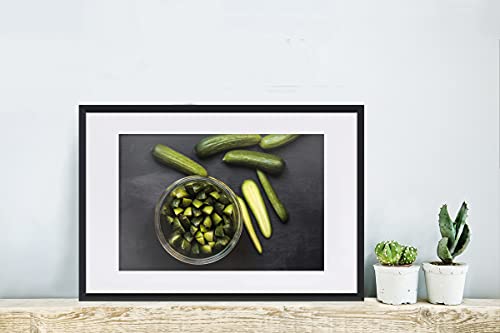 Specification: Poster met lijst Komkommer – Poster met lijst Verse minikomkommers in kwarten en stukjes gesnen – 60×40 cm