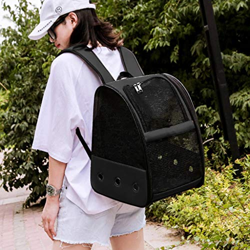 ♥【Stylish Appearance and Cleanliness】We found that the pet backpacks are not easy to clean when they are soiled by canvas or other cotton and linen materials, so we use PU leather with polyester breathable mesh. You can gently wipe the cloth with water to handle it, PU leather material is more fashionable.
