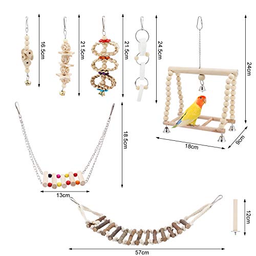 Specification: TAECOOOL 8-delig houten papegaaienspeelgoed, papegaaienvogelkauwen, natuurlijk hout, hangende bel, vogelkooi…