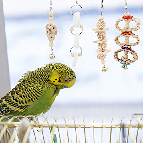 TAECOOOL 8-delig houten papegaaienspeelgoed, papegaaienvogelkauwen, natuurlijk hout, hangende bel, vogelkooi…